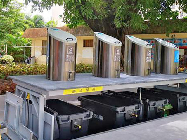 深圳小區(qū)戶外地埋式不銹鋼分類(lèi)腳踏垃圾桶,借鑒國(guó)內(nèi)外先進(jìn)經(jīng)驗(yàn),采用成套設(shè)備現(xiàn)場(chǎng)組裝地埋式垃圾分類(lèi)收集點(diǎn)。由地面小區(qū)標(biāo)準(zhǔn)4分類(lèi)不銹鋼果皮箱和地埋隱藏的660L大垃圾桶內(nèi)桶組合而成,經(jīng)腳踏式不銹鋼桶身投放后掉到地下大垃圾桶中密閉存儲(chǔ),輕踩腳踏板打開(kāi)不銹鋼果皮箱門(mén)輕松無(wú)接觸投放垃圾,投后松腳桶門(mén)液壓緩沖自動(dòng)靜音復(fù)位,防異味蚊蟲(chóng)清潔環(huán)保。配合社區(qū)地埋式垃圾桶形成完整運(yùn)行體系,實(shí)現(xiàn)居民從小區(qū)投放到末端處理“全程不見(jiàn)垃圾”。